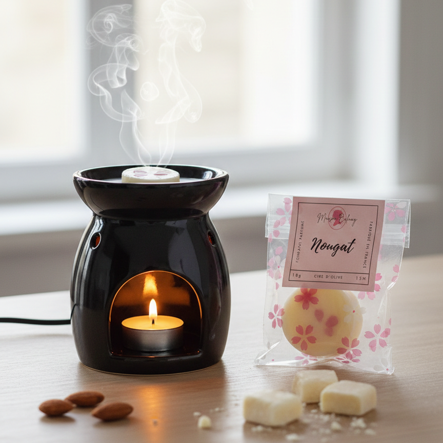 Offrez à votre intérieur une ambiance douce et délicieusement gourmande avec les fondants parfumés Nougat. Cette senteur réconfortante s’ouvre sur la douceur sucrée du miel, avant de révéler un cœur de nougat fondant, évoquant les confiseries traditionnelles. En fond, la vanille onctueuse prolonge la gourmandise et enveloppe la pièce d’une atmosphère chaleureuse et apaisante.